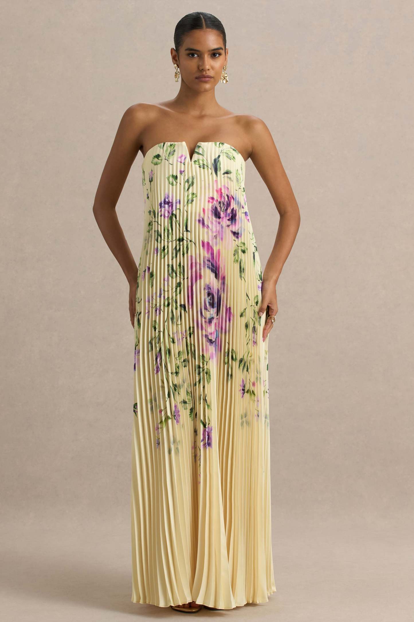 Bergamot is the ultimate occasion dress this season with a unique blend of an effortless silhouette with polished pleats. Crafted from our premium pleated stretch satin, the maxi dress boasts a flirtatious v-wire bandeau neckline that's perfect for all your dinner dates and drinks with the girls. Take each step in your stride knowing you look as great as you feel comfortable with this loose fitting gown that skims over your curves graciously.