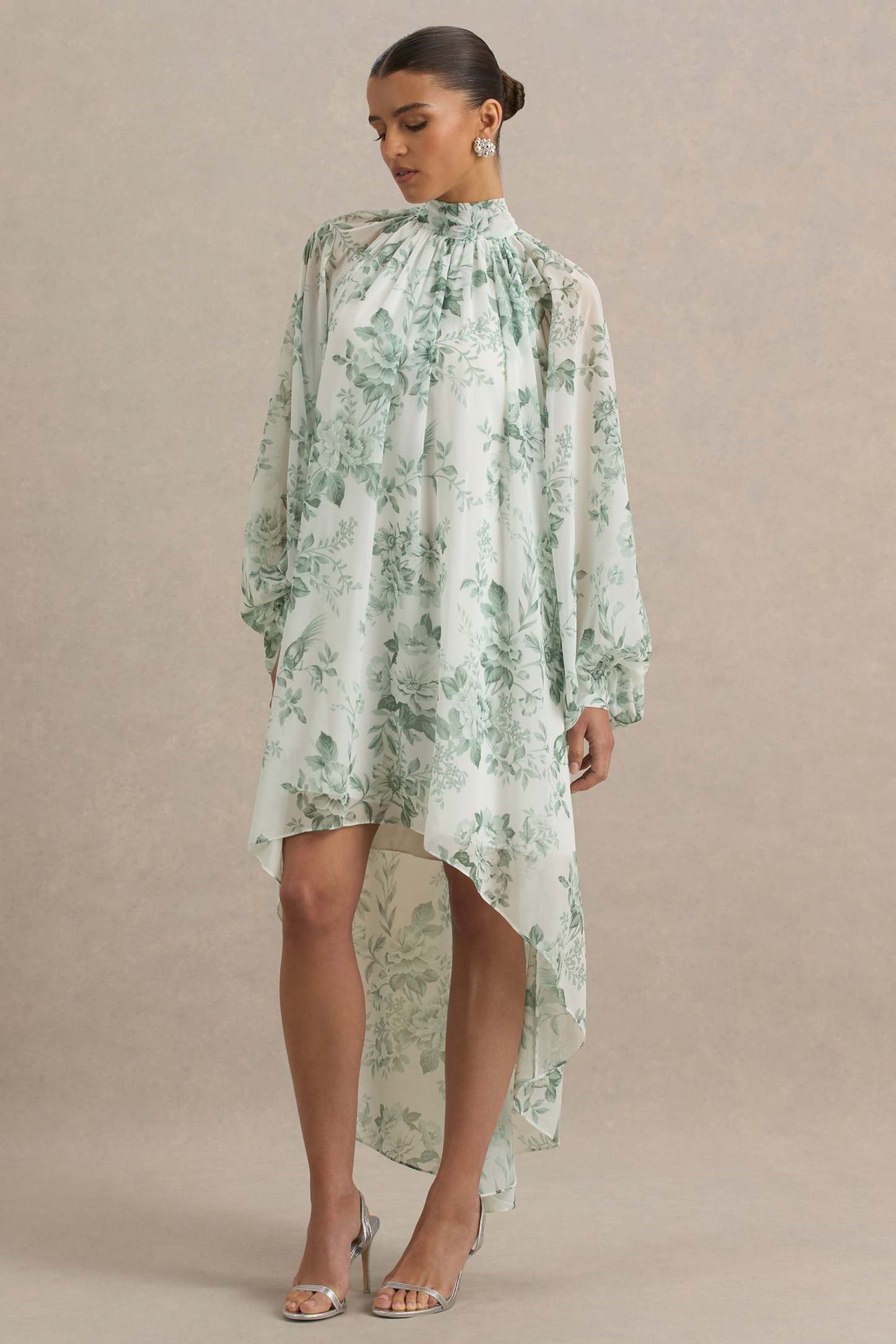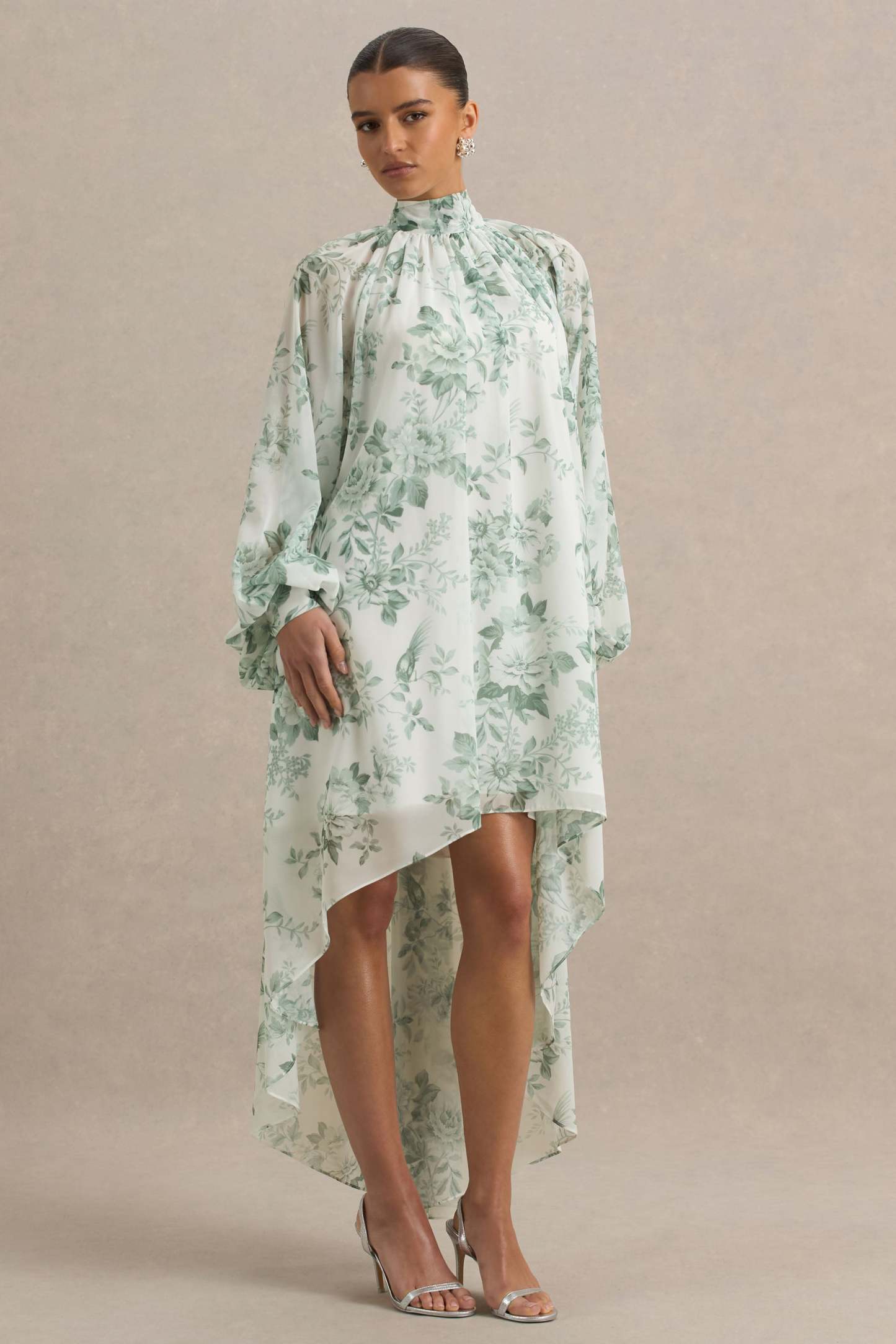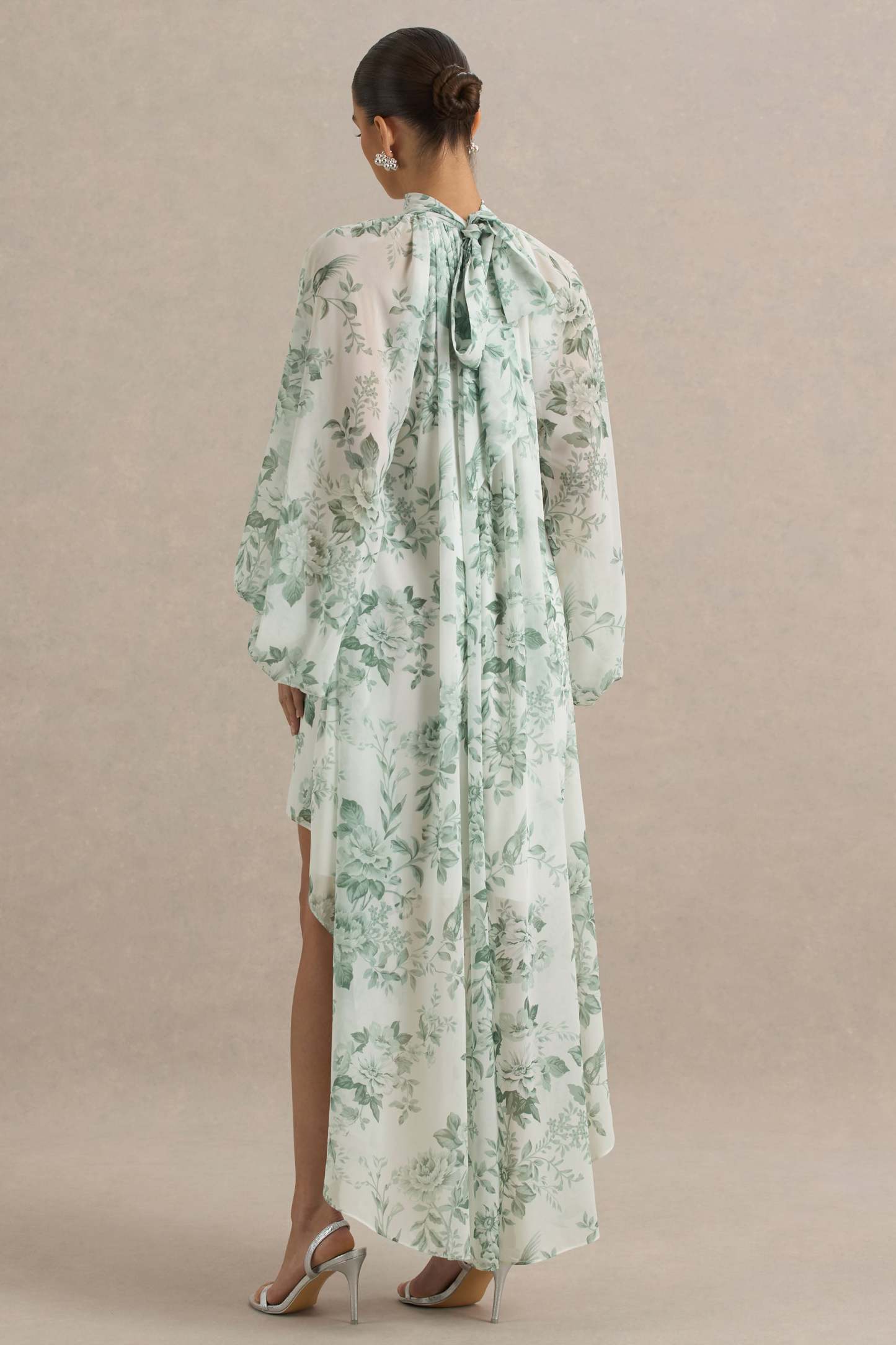 Encapsulating an ethereal charm, add Delphia to your wishlist this summer. Crafted from a semi-sheer chiffon, this maxi dress allows the suns rays to filter through, creating a dreamy effect. Boasting a self-tie neckline, voluminous sleeves and high-low hem, theres so much to love with Delphia.