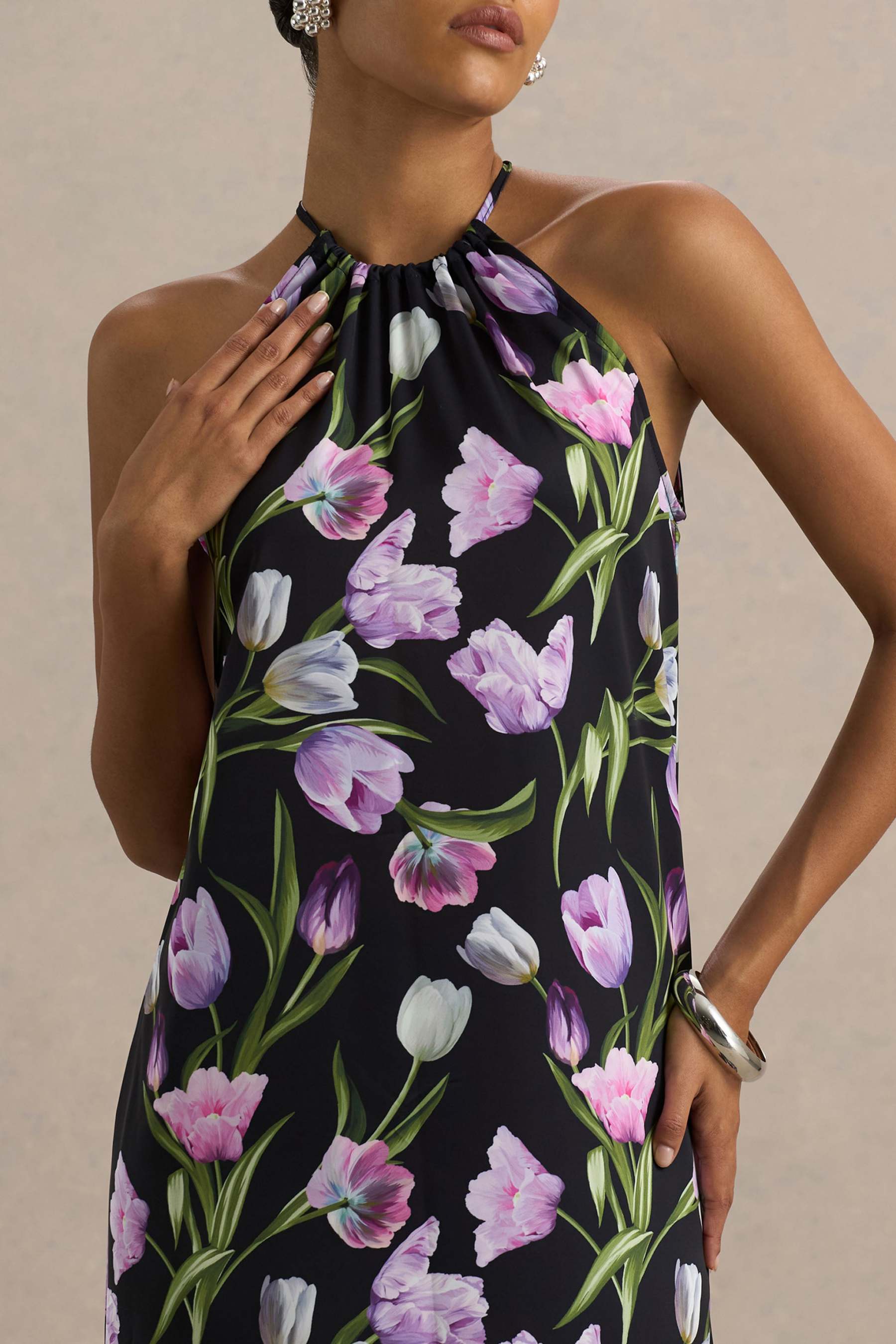 Take the rooms breath away with your elegance in Svana. Curated in a black floral print of our premium satin, this gown skims over your curves, effortlessly sculpting your silhouette. Finished with an asymmetric, halter neckline that brings a modern edge to this timeless piece. From weddings to black tie galas, Svana will see you through all occasions this season.